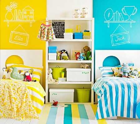 Желтый и голубой в детской для разнополых детей