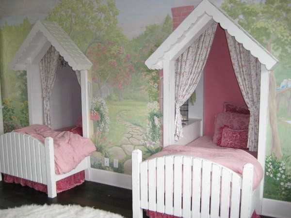Две кровати рядом в комнате для девочек фото