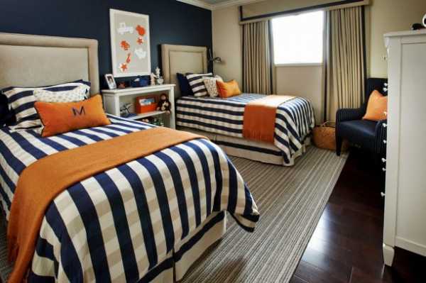 Для двух мальчиков традиционный цвет детской комнаты — это синий, но если вы хотите придумать что-то свое, можно использовать коричневый, зеленый и голубой оттенок, а также — нейтральную светлую комнату, в которую мотом можно добавить яркие детали, которые понравятся вашим мальчикам, например, подвесная модель самолета, машинки или что-то подобно. Для мальчиков можно выбрать двухярусную кровать, чтобы оставить больше места для игр.