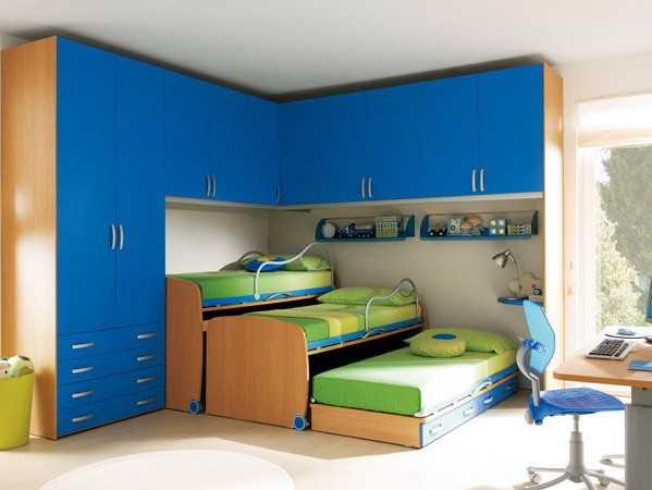 Кровати рядом в детской для двух мальчиковДетская комната для трех детей