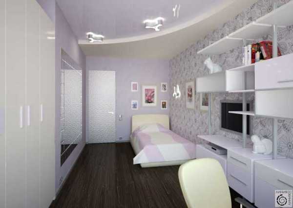 Фото 5 — Детская комната для подростка мальчика или девочки в серых тонах со встроенным шкафом купе и натяжным потолком