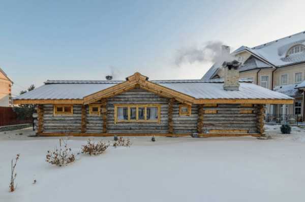 Если дом и баня, объединенные под одной крышей, имеют разные входы, то это может стать проблемой в зимний период. Чтобы избежать переохлаждения и сделать строение более комфортным, его можно дополнить беседкой. (см. также статью Особенности утепления потолка бани)