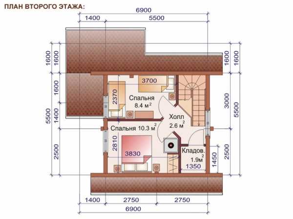 Лестница, расположенная в гостиной комнате ведет в просторный холл второго, мансардного этажа, на котором расположены две одинаковых по площади и строению спальни.