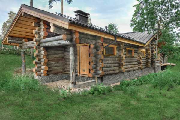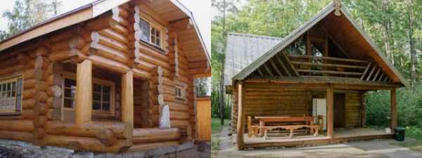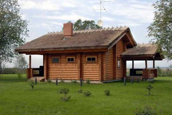 Бани из бревна обладают выразительным русским колоритом, который может быть подчеркнут еще больше, если настелить крышу камышом и пристроить небольшую беседку для пребывания на воздухе после парной.