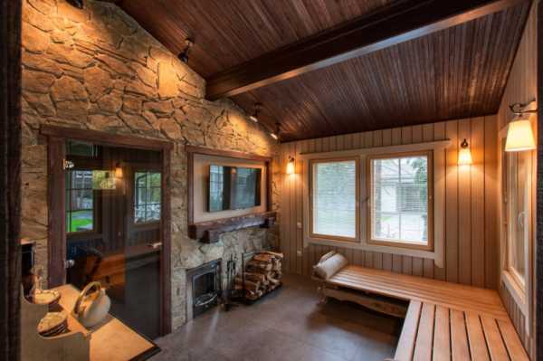 Так как парная в гостевом домике является основным помещением, то интерьер всех остальных помещений лучше всего выполнить в точно таком же стиле. Если он будет создан в деревенском стиле, то и все остальные помещения необходимо выдержать в нем же. Это можно сделать с помощью соответствующей внутренней отделки стен и других поверхностей, а также наполнением этих помещений определенной мебелью.