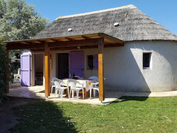 Альтернатива беседке как пристройке — навес над обеденной зоной, расположенной около бани. Обратите внимание, насколько самобытно смотрится баня не стандартной, квадратной или прямоугольной планировки, а постройка со скругленными торцами под соломенной крышей.