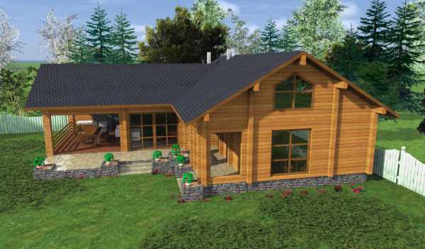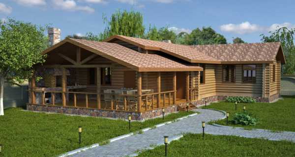 Проект бани с беседкой под одной крышей, когда она с домом является одним целым