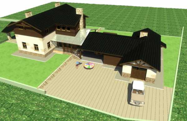 Поэтому задумывая возведение на загородном участке нескольких зданий, их лучше делать в одном стиле и под одной крышей.