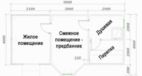 - Возможно прокладывание общей электропроводки между капитальной постройкой и баней.