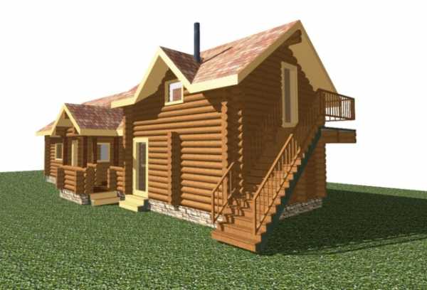 Деревянная баня с мансардой, тремя спальнями и террасой – проект «Север»