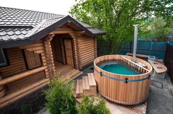 - возможность создания единой системы коммуникации, что позволит эксплуатировать баню круглогодично без необходимости таскать воду и дрова или тратиться на отдельный водопровод;
