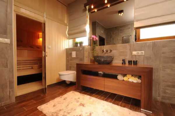 - Когда в доме предусмотрена централизованная или автономная канализация, то допустимо совмещать баню с санузлом. Это избавит от лишних затрат по организации удаления сточных вод бани в слив;
