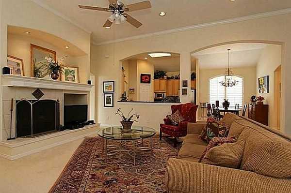 Π‘Π°ΠΌΡΠΉ ΠΏΡΠΎΡΡΠΎΠΉ Π²Π°ΡΠΈΠ°Π½Ρ β ΡΡΠΎ Π½Π΅ ΠΏΠΎΠ»Π½ΡΠΉ Π΄Π΅ΠΌΠΎΠ½ΡΠ°ΠΆ ΡΡΠ΅Π½Ρ. ΠΠ±ΡΡΠ½ΠΎ ΠΎΡΡΠ°Π΅ΡΡΡ Π½Π΅Π±ΠΎΠ»ΡΡΠ°Ρ ΡΠ°ΡΡΡ ΠΊΠΎΠ½ΡΡΡΡΠΊΡΠΈΠΈ, ΠΏΡΠΈΠΌΡΠΊΠ°ΡΡΠ°Ρ ΠΊ Π½Π΅ΡΡΡΠΈΠΌ ΡΠ»Π΅ΠΌΠ΅Π½ΡΠ°ΠΌ. Π Π΄ΡΡΠ³ΠΈΡ Π²Π°ΡΠΈΠ°Π½ΡΠ°Ρ ΠΌΠΎΠΆΠ½ΠΎ ΡΡΡΡΠΎΠΈΡΡ Π±ΠΎΠ»ΡΡΡΡ Π°ΡΠΊΡ ΠΈΠ»ΠΈ Π½Π΅ΠΎΠ±ΡΡΠ½ΡΠΉ ΡΠΈΠ³ΡΡΠ½ΡΠΉ ΠΏΡΠΎΡ ΠΎΠ΄. Π’Π°ΠΊΠΎΠΉ ΠΏΠΎΠ΄Ρ ΠΎΠ΄ ΡΠ΄Π΅Π»Π°Π΅Ρ ΠΎΠ±Π΅ ΠΊΠΎΠΌΠ½Π°ΡΡ ΡΠ²Π΅ΡΠ»Π΅Π΅ ΠΈ ΠΏΡΠΎΡΡΠΎΡΠ½Π΅Π΅, Π½ΠΎ ΠΎΡΡΠ°Π²ΠΈΡ ΡΠΈΠ·ΠΈΡΠ΅ΡΠΊΡΡ Π³ΡΠ°Π½ΠΈΡΡ ΠΌΠ΅ΠΆΠ΄Ρ ΡΠ°Π·Π½ΡΠΌΠΈ Π·ΠΎΠ½Π°ΠΌΠΈ. Π§ΡΠΎΠ±Ρ ΠΏΠΎΠ΄ΡΠ΅ΡΠΊΠ½ΡΡΡ, ΡΡΠΎ ΡΡΠΈ Π΄Π²Π° ΠΏΠΎΠΌΠ΅ΡΠ΅Π½ΠΈΡ Π²ΠΌΠ΅ΡΡΠ΅ ΠΈ Π·Π°Π» ΠΈ ΠΊΡΡ Π½Ρ ΠΌΠΎΠΆΠ½ΠΎ ΠΎΡΠ΄Π΅Π»Π°ΡΡ Π² ΠΎΠ΄Π½ΠΎΠΌ ΡΡΠΈΠ»Π΅, ΠΈΡΠΏΠΎΠ»ΡΠ·ΡΡ ΠΎΠ±ΠΎΠΈ ΠΎΠ΄Π½ΠΎΠ³ΠΎ Π²ΠΈΠ΄Π°, Π½Π°ΠΏΠΎΠ»ΡΠ½ΠΎΠ΅ ΠΏΠΎΠΊΡΡΡΠΈΠ΅.