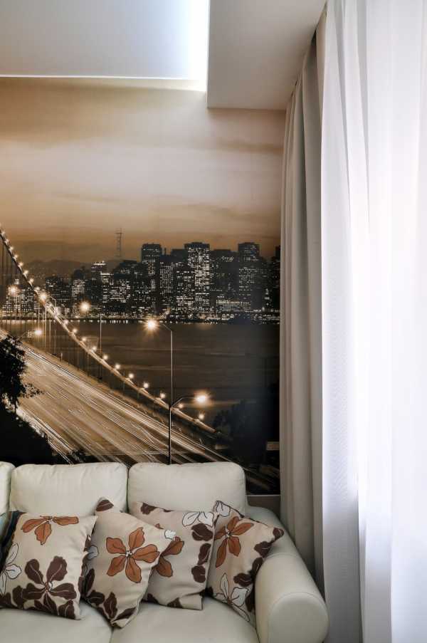Π ΡΡΠΎΠΉ ΡΠΎΠ²ΡΠ΅ΠΌΠ΅Π½Π½ΠΎΠΉ ΠΊΠ²Π°ΡΡΠΈΡΠ΅ ΠΈΡΠΏΠΎΠ»ΡΠ·ΠΎΠ²Π°Π½ Π½Π΅ΠΎΠ±ΡΡΠ½ΡΠΉ ΠΏΡΠΈΠ΅ΠΌ Π·ΠΎΠ½ΠΈΡΠΎΠ²Π°Π½ΠΈΡ ΠΏΠΎΠΌΠ΅ΡΠ΅Π½ΠΈΡ. Π§ΡΠΎΠ±Ρ Π²ΠΈΠ·ΡΠ°Π»ΡΠ½ΠΎ ΠΎΡΠ΄Π΅Π»ΠΈΡΡ ΠΊΡΡ Π½Ρ ΠΎΡ Π³ΠΎΡΡΠΈΠ½ΠΎΠΉ Π΄ΠΈΠ·Π°ΠΉΠ½Π΅ΡΡ ΡΠΏΡΠΎΠ΅ΠΊΡΠΈΡΠΎΠ²Π°Π»ΠΈ ΠΎΠ±Π»Π΅Π³ΡΠ΅Π½Π½ΡΡ ΡΠ°Π·Π΄Π²ΠΈΠΆΠ½ΡΡ ΠΏΠ΅ΡΠ΅Π³ΠΎΡΠΎΠ΄ΠΊΡ. ΠΠ½Π° ΠΌΠΎΠΆΠ΅Ρ Π½Π°Π³Π»ΡΡ ΠΎ Π·Π°ΠΊΡΡΠ²Π°ΡΡ Π³ΠΎΡΡΠΈΠ½ΡΡ, Π»ΠΈΠ±ΠΎ ΡΠ°ΡΡΠΈΡΠ½ΠΎ Π·Π°Π³ΠΎΡΠ°ΠΆΠΈΠ²Π°ΡΡ ΠΎΠ±Π·ΠΎΡ. Π£ ΡΡΠΎΠΉ ΠΈΠΌΠΏΡΠΎΠ²ΠΈΠ·ΠΈΡΠΎΠ²Π°Π½Π½ΠΎΠΉ ΡΡΠ΅Π½ΠΊΠΈ Ρ ΠΎΠ΄Π½ΠΎΠΉ ΡΡΠΎΡΠΎΠ½Ρ ΡΡΡΠ°Π½ΠΎΠ²Π»Π΅Π½Π° ΠΎΠ±Π΅Π΄Π΅Π½Π½Π°Ρ Π·ΠΎΠ½Π°, Ρ Π΄ΡΡΠ³ΠΎΠΉ β ΡΠ΅Π»Π΅Π²ΠΈΠ·ΠΎΡ Ρ Π°ΠΊΡΡΡΠΈΡΠ΅ΡΠΊΠΎΠΉ ΡΠΈΡΡΠ΅ΠΌΠΎΠΉ.Β