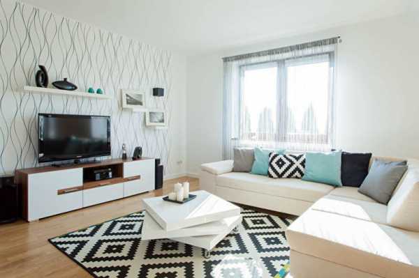 Не стоит обклеивать стены комнаты в обои с полоской или крупным рисунком. Если уж так сильно хочется, тогда выделите с помощью таких обоев одну зону.
