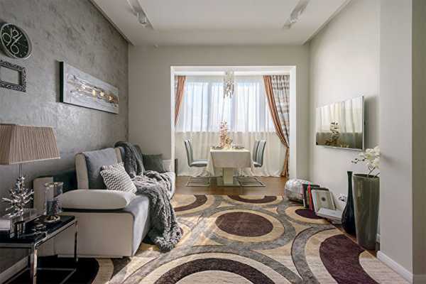 Современные дизайнеры предлагают возможность объединить гостиную с балконом или с кухней. Так пространство станет больше, а значит увеличится и количество идей для дизайна.