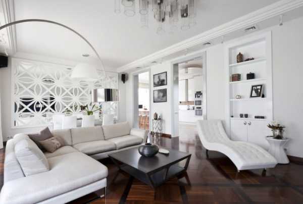 Белый цвет идеально подойдет для гостиной в любом стиле. Этот цвет визуально расширяет пространство, а также делает его воздушным. Чтобы не превратить гостиную в больничную палату, рекомендуется разбавлять это цвет или яркими оттенками, или просто другим спокойным цветом. Белый цвет гармонирует с любым другим цветом. Дизайнеры еще называют его базовым. Белый цвет хорошо подчеркнет дизайнерскую мебель и другие дорогие аксессуары.