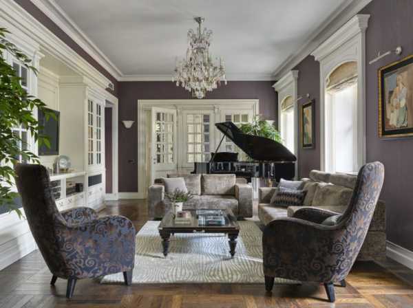 - По этим признакам можно безошибочно определить, что мы имеем дело с гостиной, оформленной в классическом стиле: