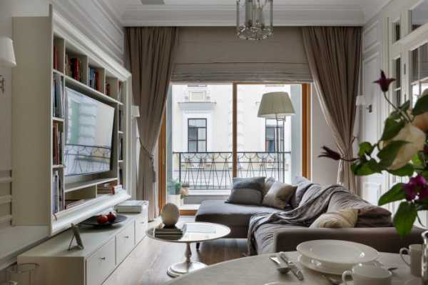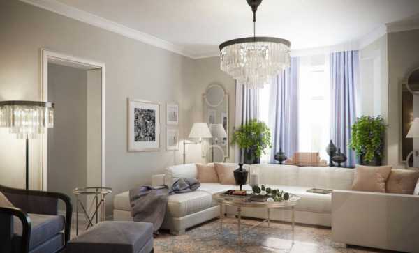 На втором фото красивой гостиной в обычной квартире можно наблюдать классический пример «холодного» интерьера. Серые и сиреневые оттенки создают достаточно строгую, почти официальную обстановку, не лишенную между тем известной элегантности.