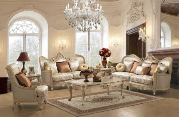 Классика любит изящные предметы: красивая вырезная ручка или вставки в мягкой мебели. Не обойдется и без картин и зеркал. На пол необходимо постелить ковер. Он может быть однотонным с большим ворсом или же шерстяным с красивым орнаментом.