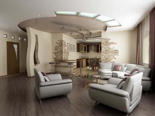 Как правило, объединенное пространство кухни-гостиной разделяется на функциональные зоны. Такие зоны могут отличаться цветовым оформлением, перепадами пола или потолка, отделяться предметами мебели или легкими декоративными перегородками. Ниже представлены реальные фото планировки, ремонта и дизайна гостиных, которые могут служить настоящим образцом стиля.