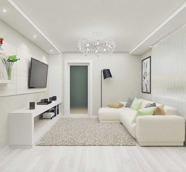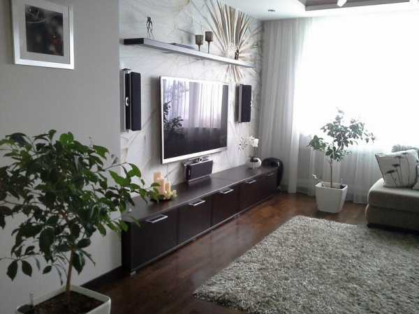 Гостиную прямоугольной формы обставить гораздо сложнее. Расставить мебель получится только вдоль стен, а свободное пространство выглядит гораздо меньшим по площади. И все же, правильно подобрав мебель и отделку стен, можно обеспечить достаточный простор.
