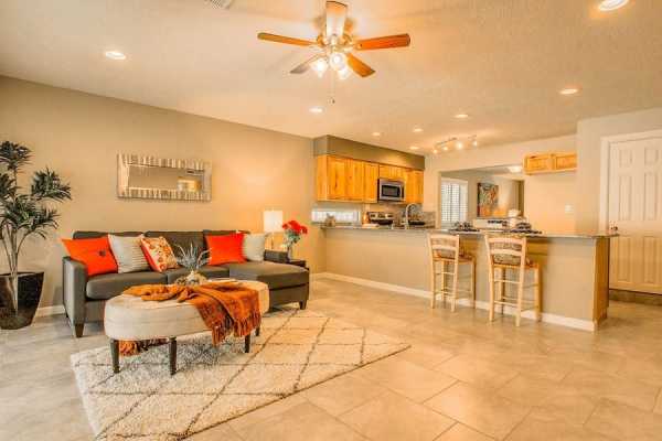 Также необходимо правильно зонировать помещение. Для кухонного пола можно выбрать плитку, которая легко моется, а для гостиной уже отдать предпочтение ламинату или ковролину.