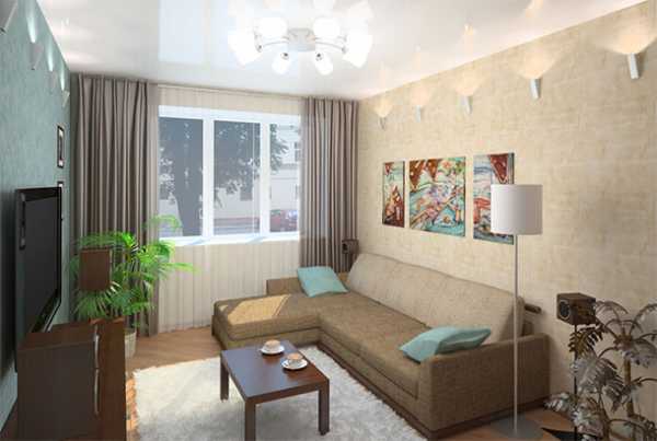 - В маленькой гостиной стараемся отказываться от сложных и громоздких конструкций (двухуровневые или подвесные потолки).