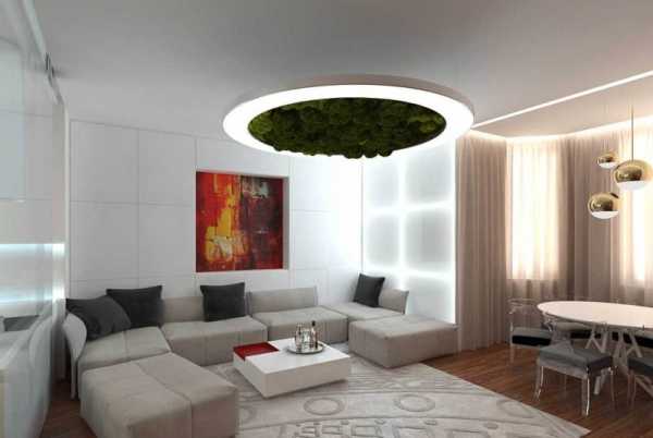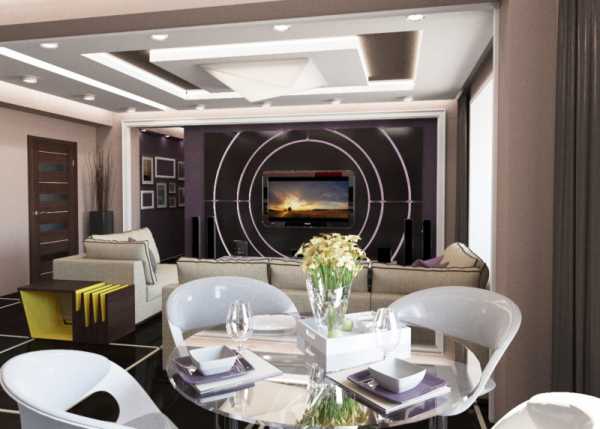 Включает в себя: спокойную общую цветовую гамму с яркими элементами, минимум мебели, диван – основа всего. Современный стиль подразумевает наличие свободного пространства без различных перегородок. Большое количество света. Для этого применяются различные световые приборы. Подсвечиваться может пол. Не надо вешать хрустальную люстру. Лучше выберите что-то оригинальной формы и расцветки.