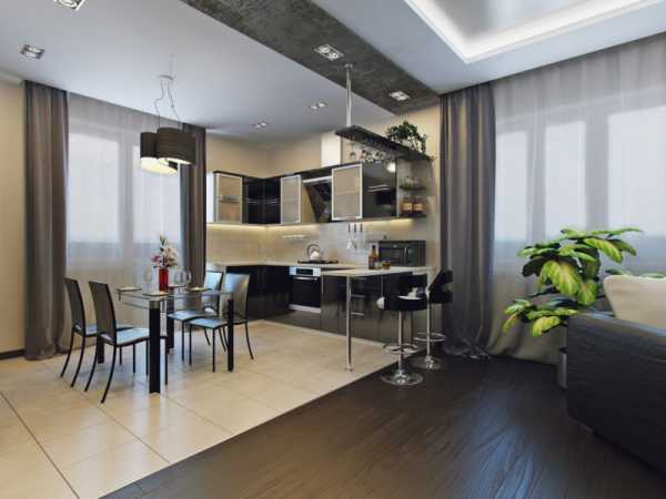 В последнее время стало модно объединять в одно пространство гостиную и кухню. В этом есть свои преимущества. Во-первых, так появляется столовая больших размеров, где можно сидеть за столом большой компанией. Во-вторых, если кухня маленькая, то это прекрасный вариант расширить ее. В-третьих, появляется хорошая возможность не отрываться от беседы с гостями или с домочадцами во время приготовления еды.
