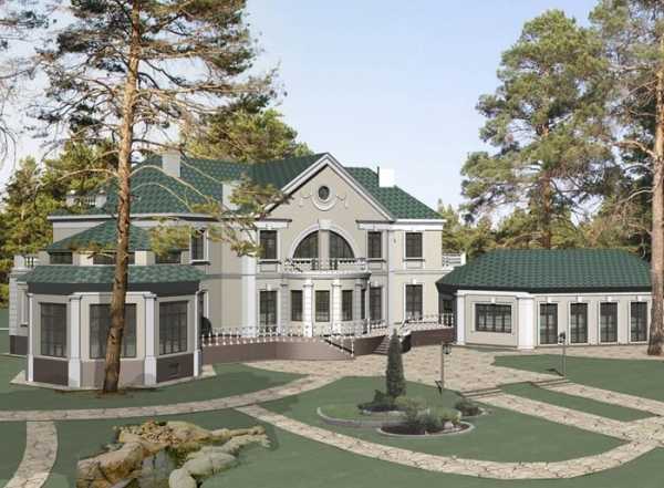 Сочетание функционального оформления и богатства выделяет особняк, расположенный в сельской местности. В этом случае здание играет роль законодателя моды, влияющего на дизайн рядом расположенных домов.