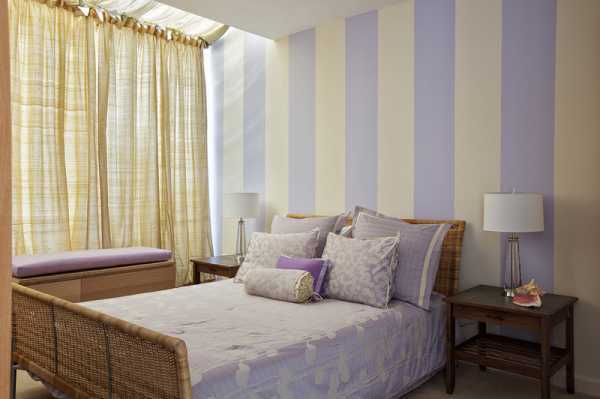 интерьер комнаты девочки подросткаИнтерьер с использованием полосатых штор и обоев поможет вашему ребенку развить масштабное восприятие и создаст современную атмосферу в комнате девочки. Кровать в лавандовых оттенках добавляет органичности и делает комнату мягче и нежнее.