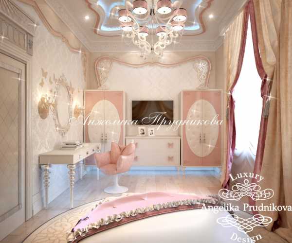 Розовый цвет – признанная классика в дизайне детских комнат для девочек, но когда его слишком много, он утомляет. А вот в сочетании с белой лепниной, кремовым текстилем и светлой мебелью с серебристой патиной розовый смотрится очень нежно.
