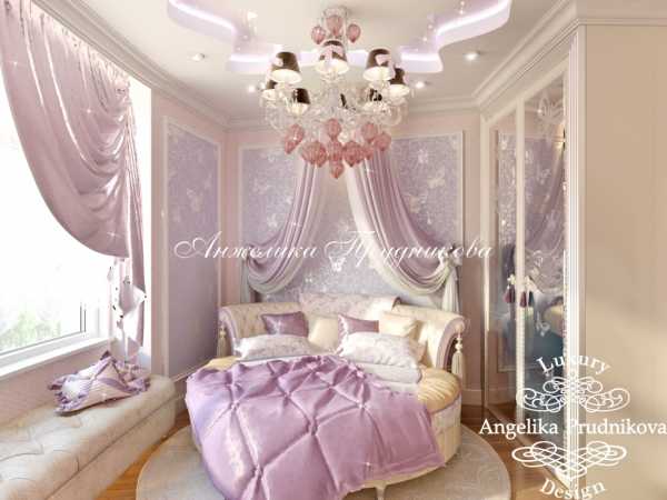 фото комнаты для девочек подростковЕсли ваша дочь артистична и любит театр, то ей непременно понравится комната, подернутая налетом драматизма, который в данном варианте создает цветовая гамма, текстура покрывала, стен и коврика и замечательная, притягивающая взгляды люстра Экстравагантное окно с занавесками привносит некоторую гармонию и сглаживает этот драматизм.