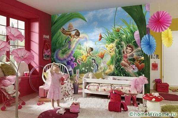 15. Фотообои – яркий акцент в дизайне детской комнаты для девочки