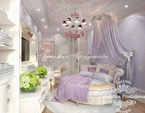 На фото: Дизайн-проект детской комнаты для девочки в московской квартиреНежный сиреневый цвет – отличная альтернатива розовому. С его помощью можно создать в детской для девочки удивительно нежный интерьер. А чтобы этот цвет смотрелся более изысканно, Анжелика Прудникова советует сочетать его с белым.