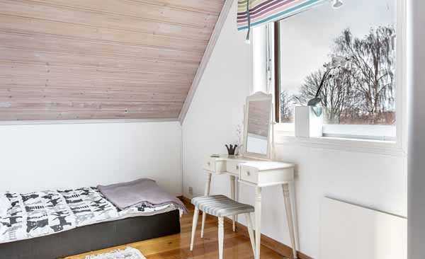 Циркуляция воздуха в спальне нарушается косой крышей. А спать в самом душном углу дома не понравиться никому. И встать в согнутом положении … это самый большой недостаток спальни на чердаке.