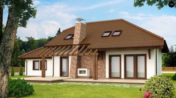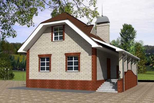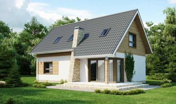 - Одноэтажный дом с мансардой под двускатной крышей.