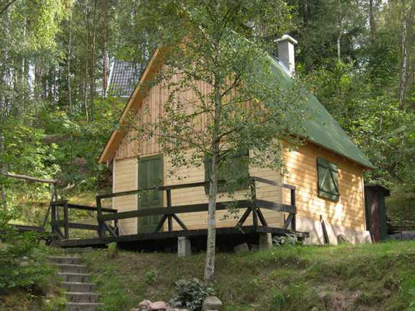 С первого взгляда, это — обычный дом, ничем не отличающийся от всех остальных. Но внутри у него на первом этаже расположены кабинет и гостиная – столовая, а в мансардной части три комнаты отдыха и санузел. Отличительной чертой этой конструкции является мансардное окно с балконом над входом.