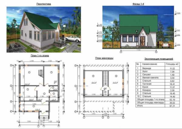 Проекты одноэтажных домов с мансардой, планы, фото, цены. Каталог содержит планировки, планы и чертежи