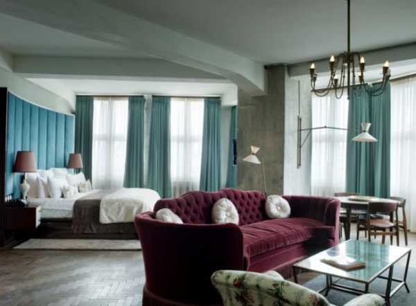 Первое и основное, с чем стоит определиться – сколько разных «зон» вы хотите создать. Например, в комнате побольше можно сделать гостиную и гардеробную – тогда помещение можно разделить зеркальным шкафом или простой ширмой. Зону гостиной оформлять можно в смелых тонах – использовать сочетание ярких и спокойных тонов, а гардеробная может быть оформлена в светлых или, наоборот, темных оттенках.