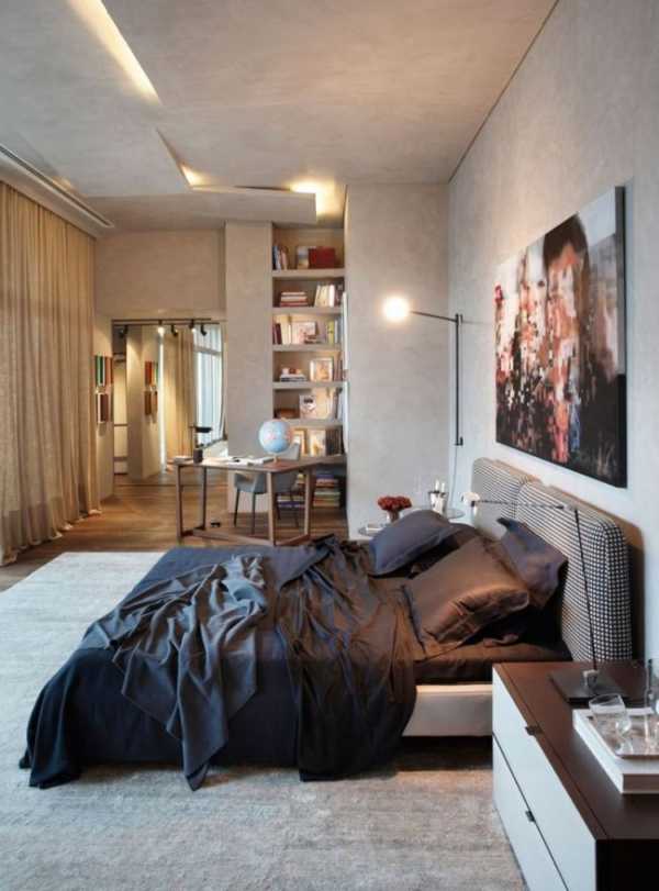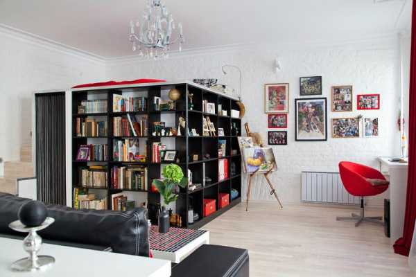 - Для начало нужно провести «зонирование» квартиры и определить, где будет общая зона, а где – приватная территория. В небольшой квартире можно разделить пространство, например, многоярусными полками до потолка или изящным узким шкафом. За полочками будет находиться кровать, а вся остальная площадь будет считаться местом для приема гостей