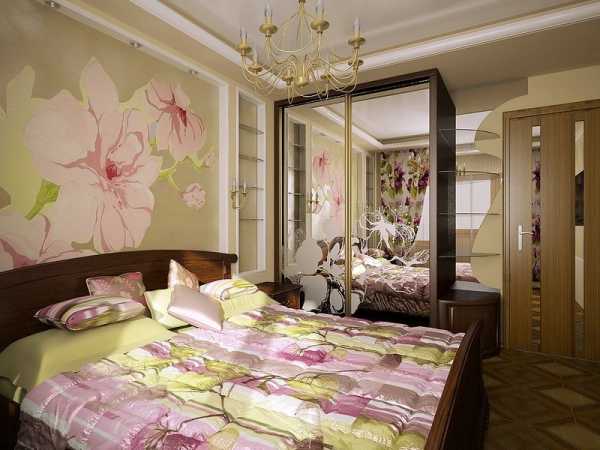 Главная задача – это максимально освободить пространство, не «захламлять» помещение и пользоваться всеми тонкостями «визуального увеличения». Например, пару метров добавит шкаф-купе с зеркалами, использование обоев без рисунка и навесные полочки вдоль стен под самым потолком.
