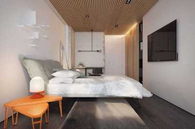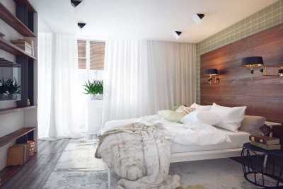 Натуральное дерево в интерьере спальни приветствуется как никогда: потолочные балки, обшивка деревянными панелями, паркет или поды из досок – актуальные тренды.