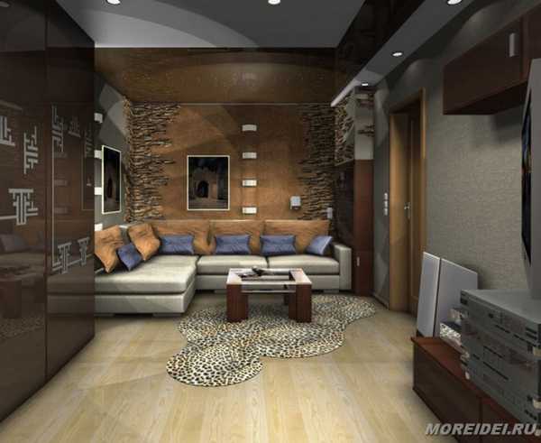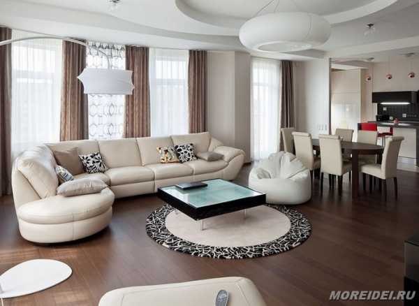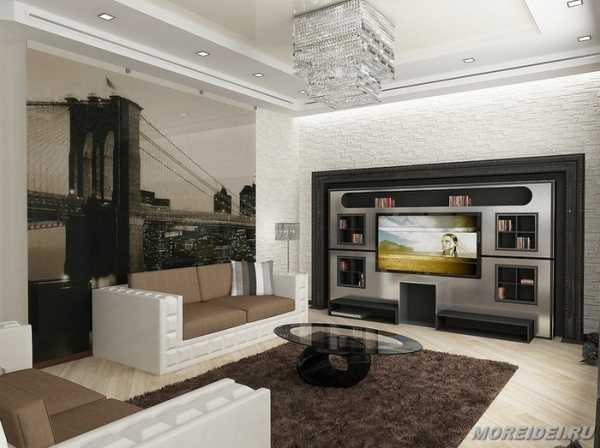 Проект оформления помещения гостиной с использованием современного ремонта и мебели