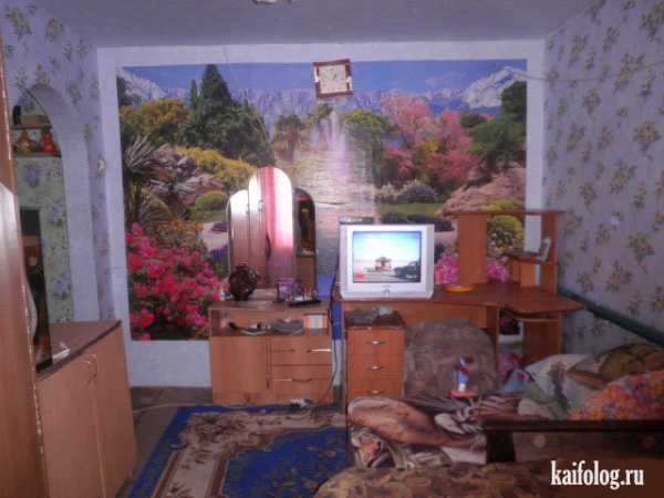 Очарование российских квартир или дизайн интерьера по-русски, рожденный в аду. Продолжаем выкладывать панк-приколы в стиле kaifolog.ru, и на этот раз мы увидим самые необычные дизайнерские решения в квартирах россиян. Ребята, не советую никому смотреть подборку в синем виде — подташнивает и так реально. Специально не стала брать срач, ужас и бытовую запущенность, а собрала именно дизайнерские приколы про российские квартиры. Обязательно комментируйте. Кстати, все эти ужасы — реальные фото из объявлений о продаже или сдаче квартир. Думаю, после такого агенты по недвижимости понимают, что они не рубят бабки, а реально их зарабатывают.