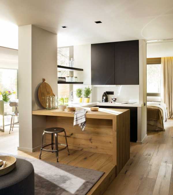Также квартира-студия позволяет не ставить обеденный стол на кухне, это может быть стол-трансформер, который из журнального превращается в обеденный и наоборот. Если есть возможность сделать такую перепланировку, то это лучший вариант.