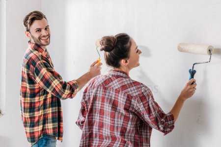 В «хрущевке» можно покрасить стены насыщенной матовой краской, а для центра потолка использовать глянцевую краску светлых тонов, что позволит добиться контраста и усилит впечатление.