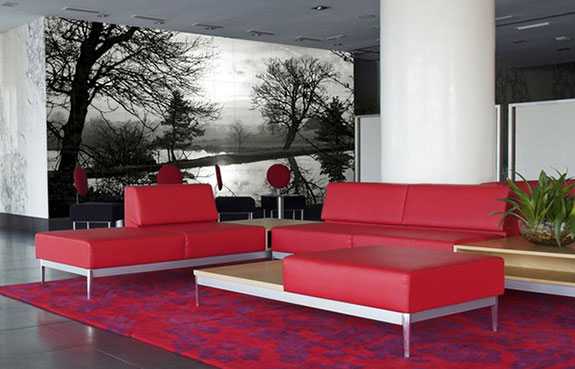 - фотообои – идеальный вариант для тех, кто хочет сделать свой зал неповторимым индивидуальным. Они помогут решить много дизайнерских проблем и визуально отредактировать недостатки пространства, но требуют профессиональной поклейки и не скрывают неровности стен;
