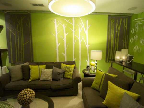 Также будет интересен союз желтого и светлого оттенка зеленого цвета, что создаст наиболее благородный и изящный интерьер. Представленные варианты не просто сделают зал эффектным, но и выразят неотъемлемый вкус своих хозяев.